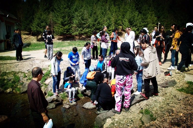 ? ? ? ? 在抵達水源地之前,泉陽泉的工作人員便讓所有的吉大師生準備好空瓶子或者是空杯子,在水源地的泉眼處接上一瓶直接從地下涌出的礦泉水,感受純純的、大自然的味道。